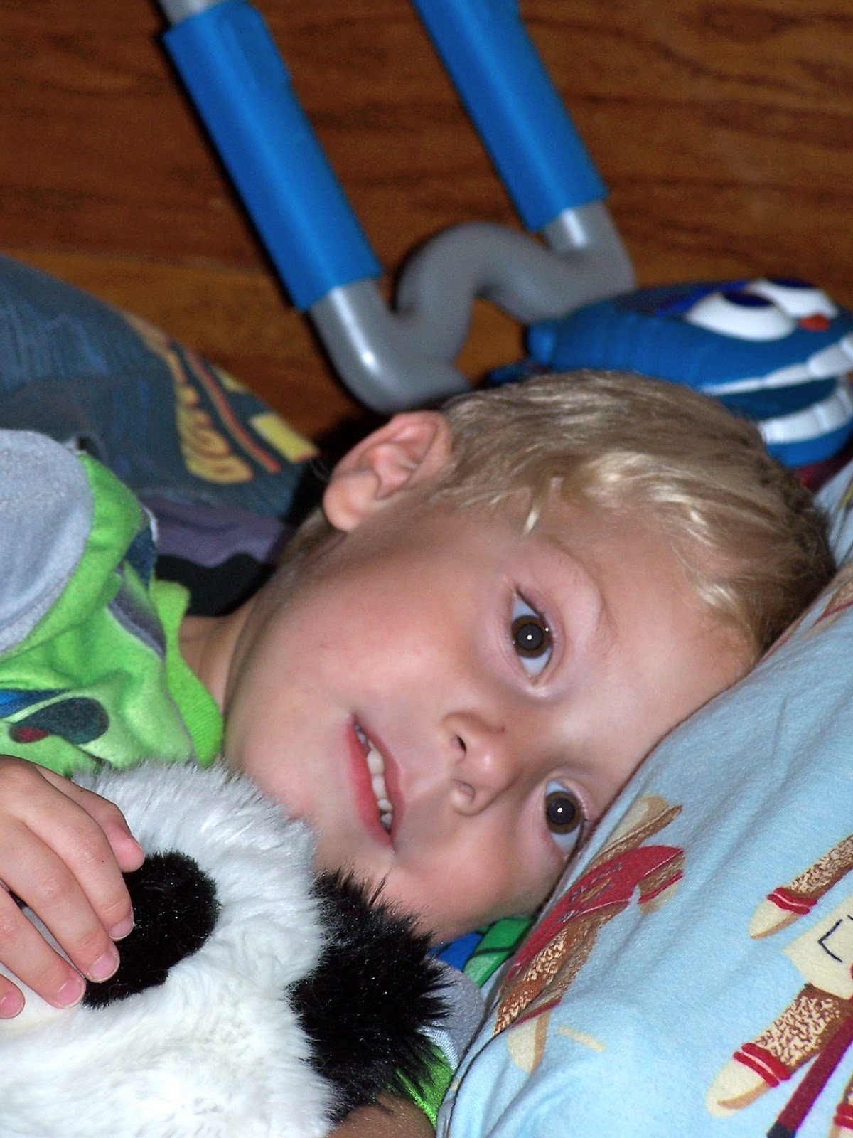 Jack cuddling with his panda named Kung Foo. He got him from Build-A-Bear and he growls. If that's not Jack I don't know what is!